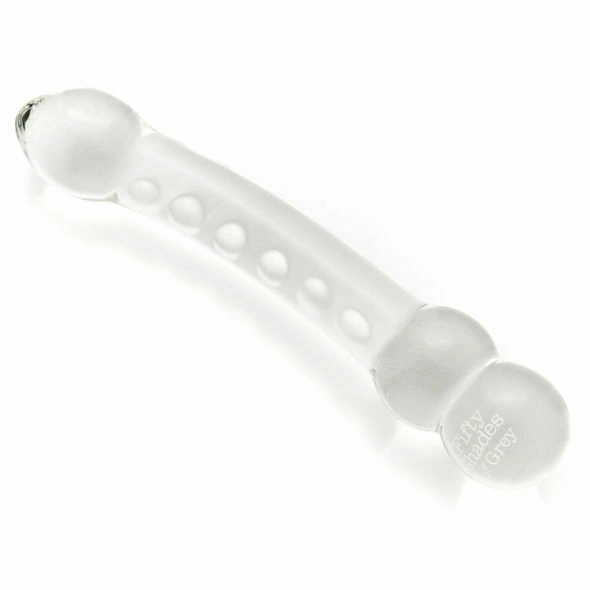 Embark on a journey of exquisite pleasure with the Drive Me Crazy Glass Massage Wand, designed to deliver an explosive G-spot experience. This masterpiece from the Fifty Shades of Grey collection features a gentle upward curve, perfect for stimulating those elusive internal pleasure zones. Each end of this glass dildo offers a unique sensation, with a thrilling textured shaft for an added dimension of pleasure.