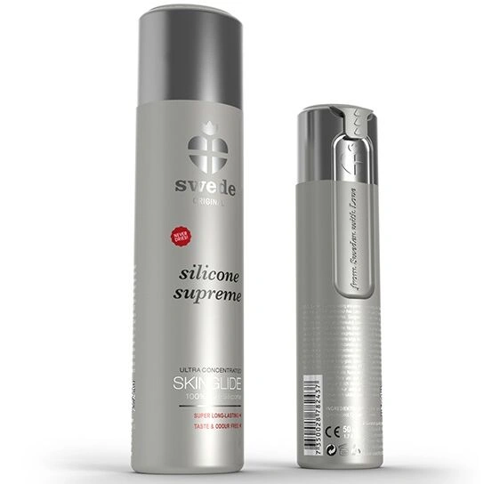Swede Original silicone Supreme is an ultra concentrated skinglide lube silicone-based. Extremely long-lasting and concentrated bodyglide  Never dries out or gets sticky! Also is taste and odour free and it’s compatible to use with latex condomsÂ
